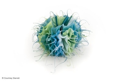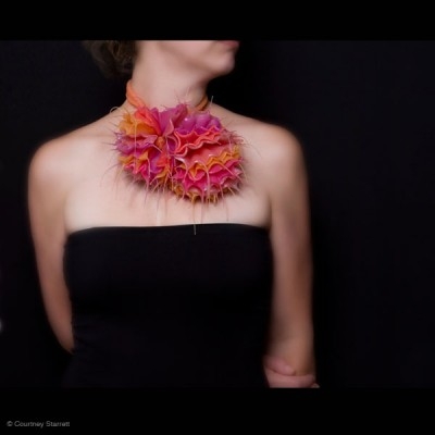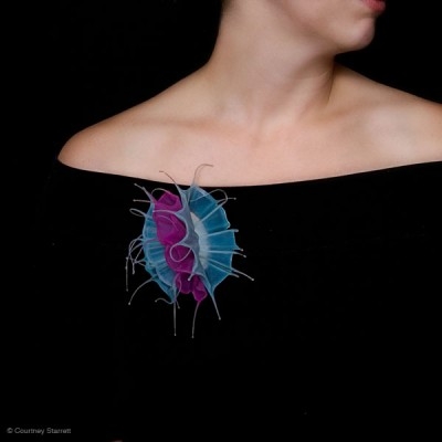 Courtney Starrett's beautiful and organic shapes look like wearable creatures from the sea. Spiky, yet you know from the material it would be soft and pliable to the touch. Lovely use of colours too.