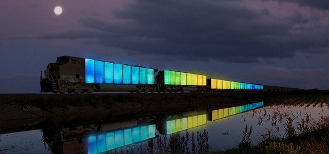 While the train is travelling it will also act as a kinetic light sculpture. The project is a collaboration with seven museums around the country that will receive funding from ticket sales."