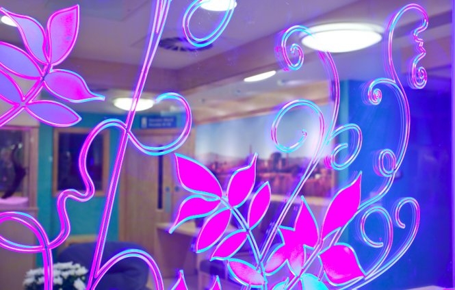 There is a sensory board as part of the decor - "A sensory board enables stimulation for patients and provokes interaction with staff and family. The board features inter-changeable panels that can be undated dependant on the patients background."