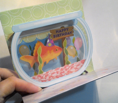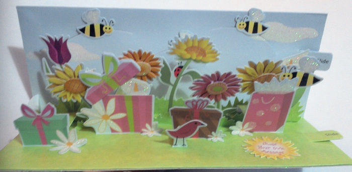 Again, using simple, but effective use of card, cutting and slots to create moving and 3D cards.