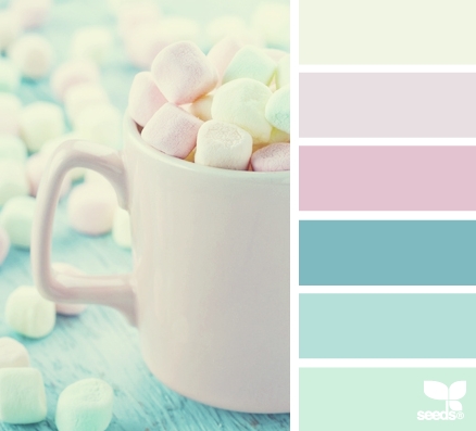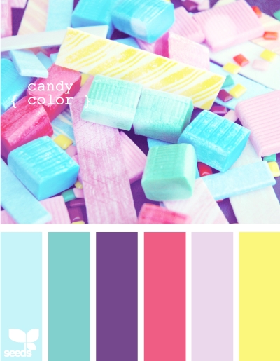 I can't seem to find exactly what I'm looking for, but I'm liking quite bright, but pastel-like blues, pinks, purples and yellows for the colour palette.