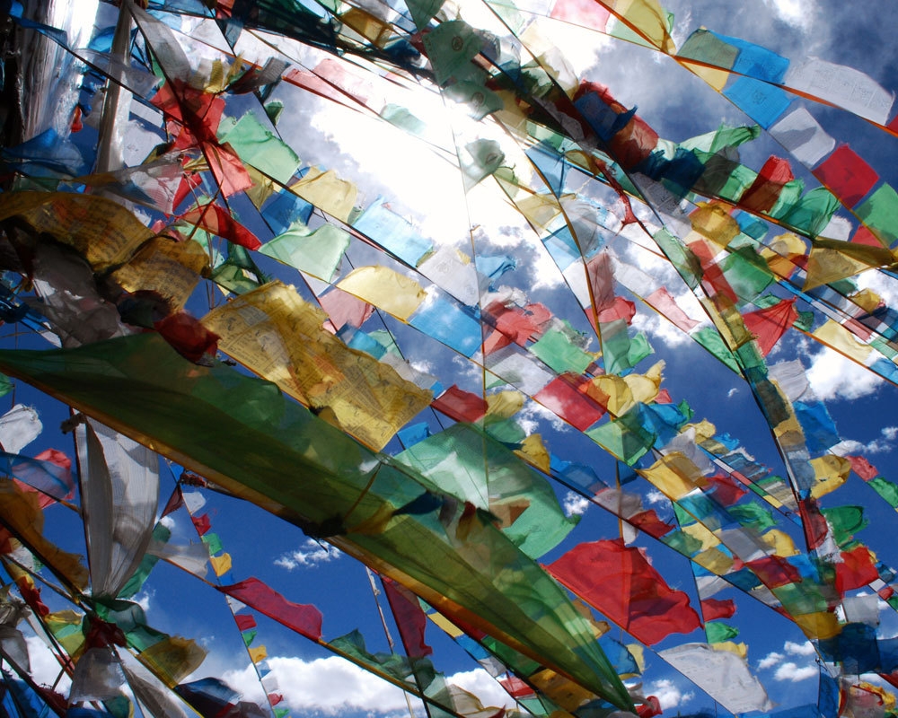 The Five colors of Tibetan Prayer Flags traditionally represent the Five Elements