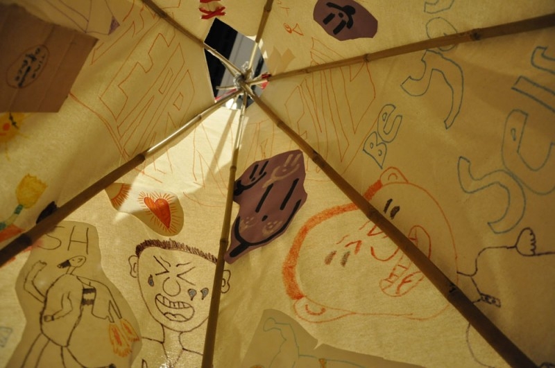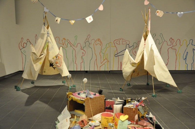 Lighting is key, but the exhibition has a variety of elements and fills the space well. The ide of decorating fabric to then be draped over to make teepees is so simple yet engaging.