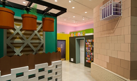 The idea of creating space through brightly painted cardboard structures is very appealing - something that is throw-away yet can have presence.